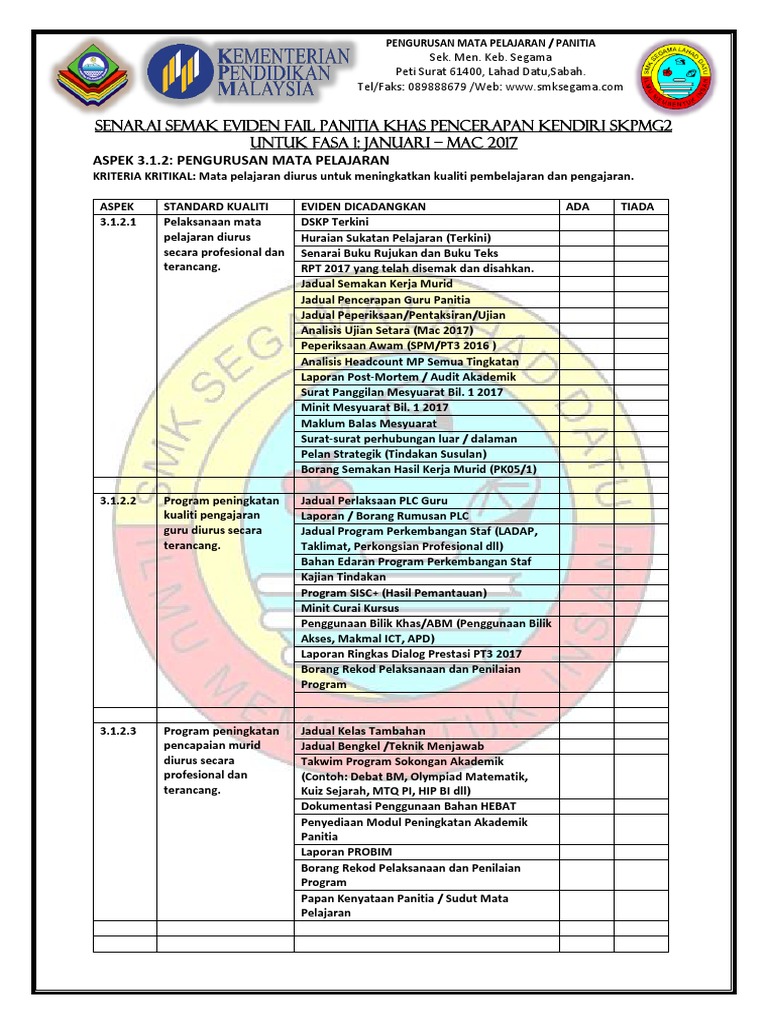 Contoh evidens skpmg2 perkongsian contoh evidens pelaksanaan skpmg2 ini bukan hanya sebagai persediaan untuk pengisian skpmg2 malah yg lebih penting adalah sebagai panduan tahap tindakan pengurusan pemajuan sekolah kita. Ia disebut skpm gelombang 2. Pembelajaran dan pemudahcaraan terdapat 6. Borang penilaian mp3 download gratis mudah dan cepat di metrolagu, stafaband, downloadlagu321. Bermula mac 2017 pengisian nkra skpmg2 secara online adalah melalui portal nkra kpm, di mana sebelum ini ia diisi di portal enazir.