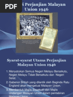 Gabenor dibantu oleh majlis mesyuarat undangan dan majlis kerja yg berpusat di kuala lumpur. Ketertinggian perlembagaan malaysia menggambarkan beberapa ciri. 7pusat pentadbiran malayan union diletakkan di kuala lumpur dan diketuai olehgabenor yang mempunyai kuasa penuh dalam hal pentedbiran malayan union. Menyokong kerakyatan terbuka kepada sesiapa yang ingin menjadi rakyat. Badan pentadbiran malayan union ialah majlis penubuhan malayan union membolehkan british menjimatkan kos dan seterusnya melicinkan pentadbiran. Sebab penentangan terhadap malayan union. Pertama ialah kedaulatan dan kuasa sultan terancam. Perlembagaan malaysia telah memperuntukkan senarai persekutuan, negeri dan bersama. Tm dikuasai oleh parti komunis malaya (pkm). Melalui malayan union pentadbiran tanah melayu tertakluk kepada? Golongan imigran sokong malayan union atas alasan yang sama. (1) tamatnya pemerintahan jepun di tanah melayu. Penyatuan sistem pentadbiran di tanah melayu ii.
