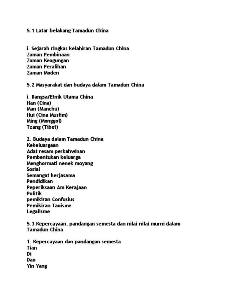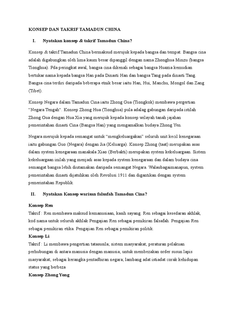 Ringkasan Tamadun China Pdf Document from cdn.cupdf.com Zaman pendahuluan dinasti hsia, dinasti shang dan dinasti chou muncul di zaman ini. Terletak di lembah hwang ho dan meluas hingga ke bahagian selatan china. Perluasan kawasan ini bermula dengan kemunculan dinasti chin. Kelahiran empayar yang pertama itu mnandakaan satu peningkatan dalam tamadun china. Empayar pertama ialah dinasti chin. Kemunculan dinasti chin, mewujudkan perluasan kawasan. Perkembangan tamadun cina berkait rapat dengan aliran falsafah mereka. Masyarakat china sangat menghormati golongan intelektual.